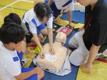 龍流連携事業の一環として、5年生で救命救急講座を実施しました。流通経済大の大学生の皆さんが講師を務め、グループに分かれてAEDの使い方や心肺蘇生の方法、倒れている人を見かけたときの対処の仕方などを学習しました。はじめは戸惑っていたようですが、大学生の皆さんのアドバイスもあり、一人一人が体験を行うことができました。最後には、流経大の稲垣先生からクイズが出され、子供たちが実際に倒れている人を見かけたときには、近くの大人に知らせるということを確認しました。