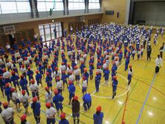 本日3時間目に、スポーツフェスティバルの結団式、全体練習を行いました。団長を務める6年生からの力強い決意表明に続いて、今年初めての全体練習として、礼を合わせる練習や運動会の歌の練習を行いました。運動会の歌は、初めての練習とは思えないほどみんな元気に大きな声で歌っていました。
