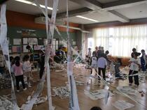本日2年生は、川原代小2年生との交流会を行いました。図工「しんぶんとなかよし」の作品作りを一緒に行いました。新聞紙を細く切ったりまるめたりしながら、教室いっぱい使ってすてきな作品を作り上げました。作成後は、お互いに作品の感想を伝え合いました。川原代の子たちも馴柴の子たちも笑顔で楽しく交流できました。