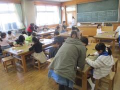 馴柴まちづくり協議会の皆さんや保護者の方を交えて、1年生が昔遊び交流会を行いました。多目的室の和室では、折り紙を教えていただき、新聞紙を使って頭にかぶれるほどの大きな兜を折リました。体育館では、お手玉のビデオを見ながらいろいろな技を練習して、東京おてだまの級位認定に挑戦していました。地域のお年寄りの方から教えてもらいながら、日本に昔から伝わる遊びを体験した子供たちは、ゲームなどとは違った楽しさを味わいながら、楽しんで活動することができました。