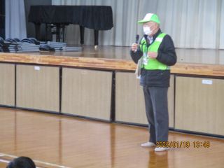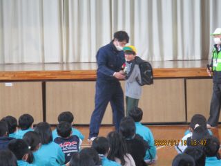 今日は不審者対応の避難訓練が行われました。訓練の後に行われた防犯教室では、龍ケ崎警察署生活安全課の大野様から、不審者と遭遇した際の対処の仕方について教えていただきました。実際に2名の児童が体験をし、つかまれる前に素早く逃げることが大切だということを学びました。また、合言葉の「いかのおすし」を例にお話ししていただき、不審者に遭遇した際にすべきことを再確認することができました。