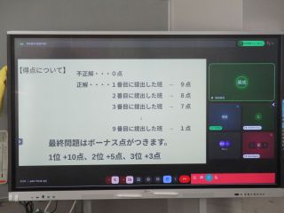 昼休みを利用して、縦割班活動が行われました。今月は「馴馬台小学校クイズ大会」でした。児童委員を中心にオンラインで問題を出題し、班のリーダーが解答を入力して送ります。解答を送るスピードも得点に反映されるので、どの班も協力して答えを考えていました。優勝は7班でした。7班のみなさんには児童委員より賞状が贈られました。白熱した、楽しい時間となりました。