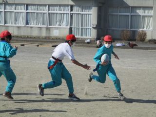 本日、タグラグビーの学習が実施されました。流通経済大学の大学生から指導を受け、楽しく活動していました。試合の審判も子どもたちが務め自分たちで試合を運営しました。子どもたちが主体的に活動に取り組む姿がたくさん見られました。