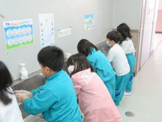 今週は、中根台中学校区小中一貫教育の健やかな体の育成プロジェクトによる「ヘルスアップウィーク」の活動を行いました。1月は、「感染症を予防しよう」というテーマのもと、中根台中学校保健委員会が作成したショート動画を見て、せっけんでの30秒手洗いに1週間取り組みました。子どもたちは、水の冷たさにも負けず、元気に30秒数えながら手洗いを行い、感染症予防に努めることができました。