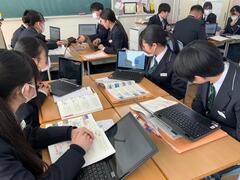 授業では、生徒一人一人が調べたことから、発電方法をどのように組み合わせるか、活発な話し合いが見られました。また、近年話題となっている原子力発電の再開について興味をもつ生徒もおり、安全性やエネルギーの安定供給、将来のエネルギーの在り方について、自分なりの視点で考えを深める姿が印象的でした。