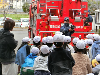 消防車両に積んである道具を教えてもらいました。