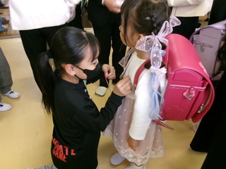 また、6年生が補助に入り、名札をつけてあげたり、準備ができた1年生と一緒に遊んであげたりしていました。