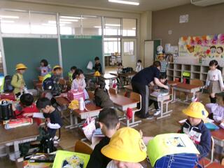 今日で登校が始まり2日目ですが、1年生は自分達で準備をしようと頑張っています。