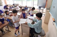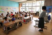 今日から1年生が教室での生活を始めました。みんな背中をピンと立てて座り、その姿勢のよさに感動しました。今日は、学習用具の収納の仕方や扱い方を学びました。新しい生活に興味をもっていたようです。明日も待っていますね。
