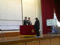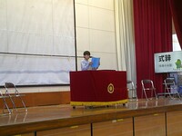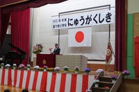 校長の式辞では、「元気に学校へ来て、たくさん学び、たくさん遊びましょう。みなさんが笑顔いっぱいで学校生活を送れることを願っています」ということと、3つのお願いとして「あいさつ」と「友だち」、「登下校の交通安全」についてお話がありました。来賓の萩原市長様からは、『「ありがとう」という言葉を大切にしてほしいこと』、「ともだち100人つくろう」とお話しされました。
