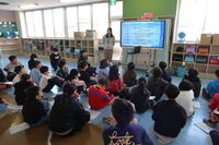 3校時、4年生は図書室で、司書から図書室の使い方について説明があり、きちんと聴いていました。