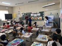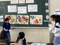1年生が図画工作で作成した絵画作品の発表会を行いました。「絵の題名は~です」と発表すると、友達からは「好きなところを教えて」と質問が出ます。「好きなところは~です」と答えるやり取りの中で、自分の作品のよさについて発表します。クラスの友達からもよさを認めてもらいました。それぞれが作成した大作を互いに認め合う、素敵な時間となりました。ご家庭でも、頑張った作品を話題にしてみてください。