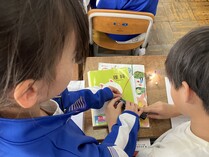 3年生の理科で、電気についての学習を行っています。どのようにして乾電池に導線をつなぐと豆電球が付くかについて実験しました。乾電池と豆電球を使ってできた電気の通り道を回路いうことも学びました。電池のつなぎ方を工夫すると明るさが増すことにも気付きました。これからも、電気について学習していきます。
